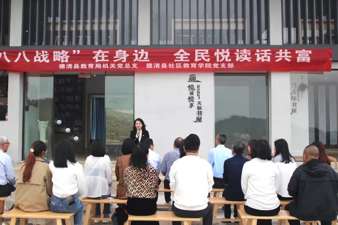 “希望通過今天的主題宣講和讀書分享活動,讓大家走進閱讀、親近書本、浸潤心靈,從讀書中獲得感悟,形成互動、互學、互幫的讀書氛圍,激發廣大社區居民的學習熱情,豐富業余文化生活……”2023年4月21日下午,德清縣下渚湖街道的天際書屋門口,坐滿了來看書、聽宣講的群眾,縣社區教育學院書記、院長孫志惠正在開展 “‘八八戰略’在身邊 全民悅讀話共富”的宣講活動。這是今年開展的第三次宣講了。