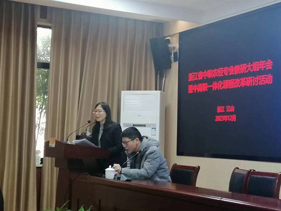 12月13日至15日,由浙江省教育廳職成教教研室主辦,衢州市教育局教研室、江山市教師進(jìn)修學(xué)校和浙江省衢州第二中等專業(yè)學(xué)校承辦的2023年浙江省中職農(nóng)經(jīng)專業(yè)教研大組年會(huì)暨中高職一體化課程改革研討活動(dòng)在浙江省衢州第二中等專業(yè)學(xué)校舉辦。本次省年會(huì)共設(shè)有6項(xiàng)議程:專家報(bào)告,農(nóng)經(jīng)專業(yè)課改成果交流,教學(xué)能力比賽展示與研討,中高職一體化教材開(kāi)發(fā)研討,農(nóng)經(jīng)專業(yè)學(xué)生技能比賽復(fù)盤(pán)研討以及中高職一體化教材編寫(xiě)研討。紹興財(cái)經(jīng)旅游學(xué)校教師唐佳瑜、李娜作了參賽分享,黨委委員、副校長(zhǎng)林慧針對(duì)農(nóng)經(jīng)專業(yè)教材編寫(xiě)作了交流。