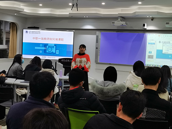 課題研究是提高教師專業素養,提升學校教育教學質量的有效途徑。為加強年輕老師們的課題研究意識,提高課題研究水平,促進學校教育科研的發展,12月15日下午,寧波建設工程學校開展了青年教師沙龍活動之“中職一線教師如何做課題”,特邀請學校英語教研組長、寧波市教育科研先進個人伍建輝老師為大家傳經送寶。
