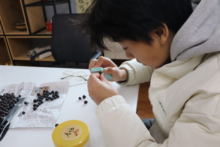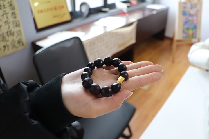進入冬季,紹興財經旅游學校校園里的無患子陸續掉落。手工社團的學生看著遍地的無患果,心生一計,決定將這顆小小的種子打孔串起,制作成手串。