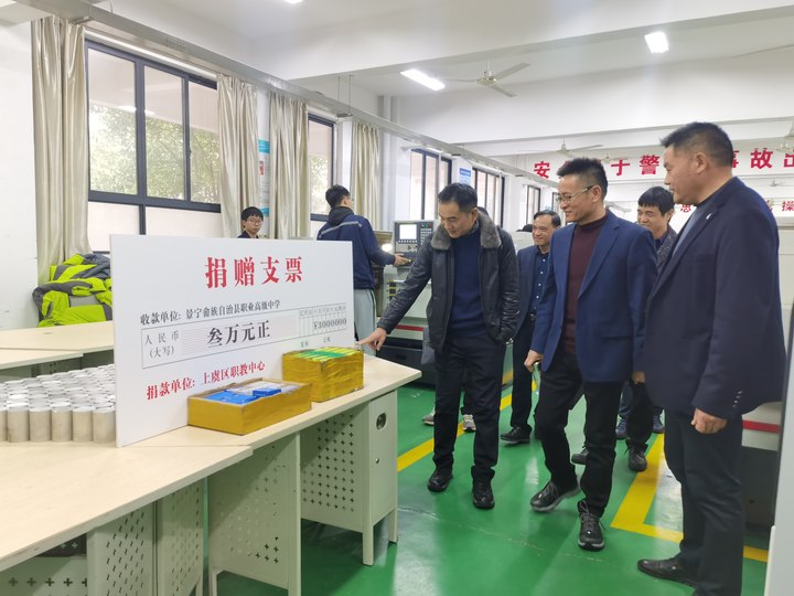 近日,紹興市上虞區職業教育中心黨委書記甘建國、校長房永亮等一行遠赴三百公里開外的麗水市景寧畬族自治縣,參加上虞、景寧職教山海協作活動,學校和景寧縣職業高級中學簽署了合作辦學協議,并捐贈了價值3萬元的實訓耗材。