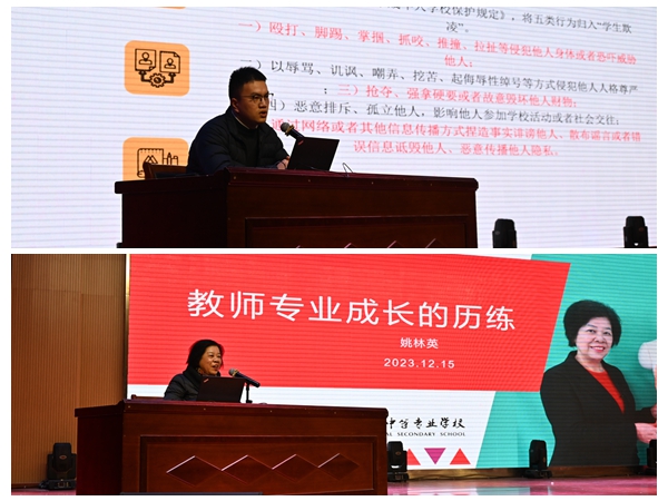省特級教師、正高級講師姚林英老師為大家帶來了題為《教師專業成長的歷練》的專題講座。姚老師秉承著“生命不息,攀登不止”的信念,先后榮獲“全國模范教師”“浙江省最美教師”“全國職業教育先進工作者”等多項榮譽。她結合自身成長經歷,從師德觀、教育教學主張、科研觀、視域觀等方面向大家講述了39年深耕職業教育的感人故事,現場響起一次又一次熱烈的掌聲。