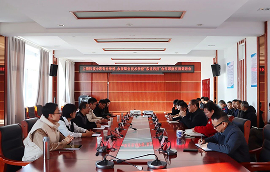 12月14日,在江西萬年的上饒科技中等專業學校,夏其明一行與該校江德明書記、王春梅副校長、中層干部以及該校“東遷西歸”項目“永康班”班主任洽談,共商合作。