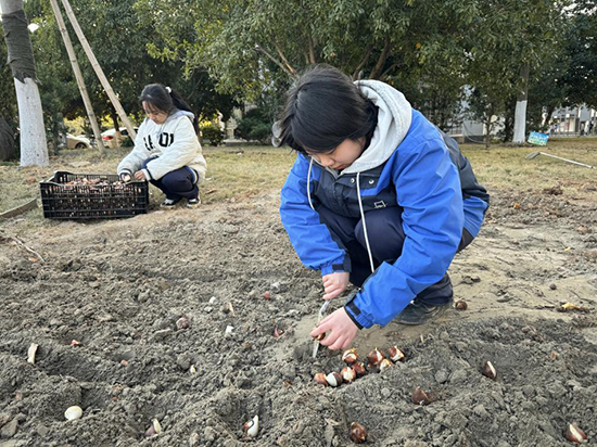 教育是一場播種的過程,通過師生共建校園景觀,在學生心中種下一顆希望的種子,一起靜待明日花開!(張燕妮)