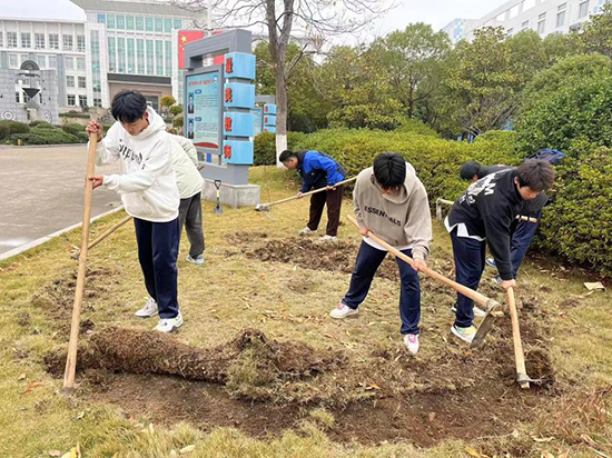 近日,在諸暨職教中心,一群園林專業的學生經常在校園花壇間穿梭,不時地停下來寫寫畫畫,他們正在“密謀”一件浪漫的大事——為學校錦上添花!