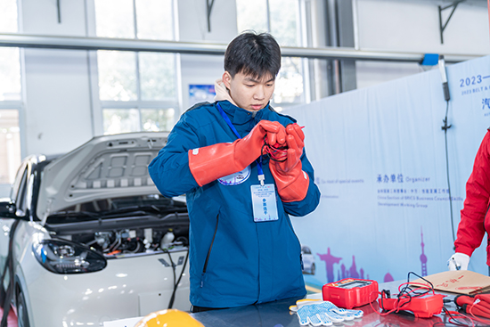 本次大賽由金磚國(guó)家工商理事會(huì)、中方理事會(huì)、一帶一路暨金磚國(guó)家技能發(fā)展國(guó)際聯(lián)盟、中國(guó)科協(xié)一帶一路暨金磚國(guó)家技能發(fā)展與技能創(chuàng)新培訓(xùn)中心主辦;中國(guó)發(fā)明協(xié)會(huì)、教育部中外人文交流中心聯(lián)合主辦;中國(guó)交通教育研究會(huì)專項(xiàng)賽聯(lián)合主辦;金磚國(guó)家工商理事會(huì)(中方)技能發(fā)展工作組承辦;中國(guó)交通教育研究會(huì)職教分會(huì)、一帶一路暨金磚國(guó)家技能發(fā)展國(guó)際聯(lián)盟交通職業(yè)教育與技能發(fā)展工作委員會(huì)、安萊(北京)汽車研究院、嘉興市交通學(xué)校(嘉興交通技工學(xué)校)、上汽通用五菱汽車股份有限公司、北京教盟博飛汽車科技有限公司、北京嘉克新興科技有限公司聯(lián)合承辦;中國(guó)交通教育研究會(huì)職教分會(huì)汽車專業(yè)委員會(huì)、中國(guó)工業(yè)合作協(xié)會(huì)產(chǎn)業(yè)與職業(yè)教育發(fā)展專業(yè)委員會(huì)、深圳市百思泰科技有限公司協(xié)辦,是一項(xiàng)國(guó)際性大賽。自2017年首屆金磚大賽成功舉辦起,六年來,金磚五國(guó)技能組累計(jì)舉辦180余場(chǎng)金磚賽事,中方技能組累計(jì)帶領(lǐng)國(guó)內(nèi)選拔出的800余名專家和選手赴南非、俄羅斯或者是線上遠(yuǎn)程參賽。本次比賽獲得前兩名的選手明年也有望出國(guó)比賽。