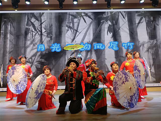 戲曲班的《我把美酒獻(xiàn)給你》《合不攏笑口》《送花樓會》和《十八相送》,個個精彩紛呈。葫蘆絲班的《月光下的鳳尾竹》和《綠島小夜曲》葫蘆絲合奏,仿佛讓這些老人們一下子回到了年輕的時候,正在風(fēng)景如畫的家鄉(xiāng)田地間追逐嬉鬧。太極班的《太極扇》、功夫舞蹈《美麗中國》和舞蹈班的《逆風(fēng)飛翔》《我們正青春》,學(xué)員們個個精神抖擻,不仔細(xì)看,你真不知道這是一群平均年齡在七十周歲以上的農(nóng)村“大娘”們。