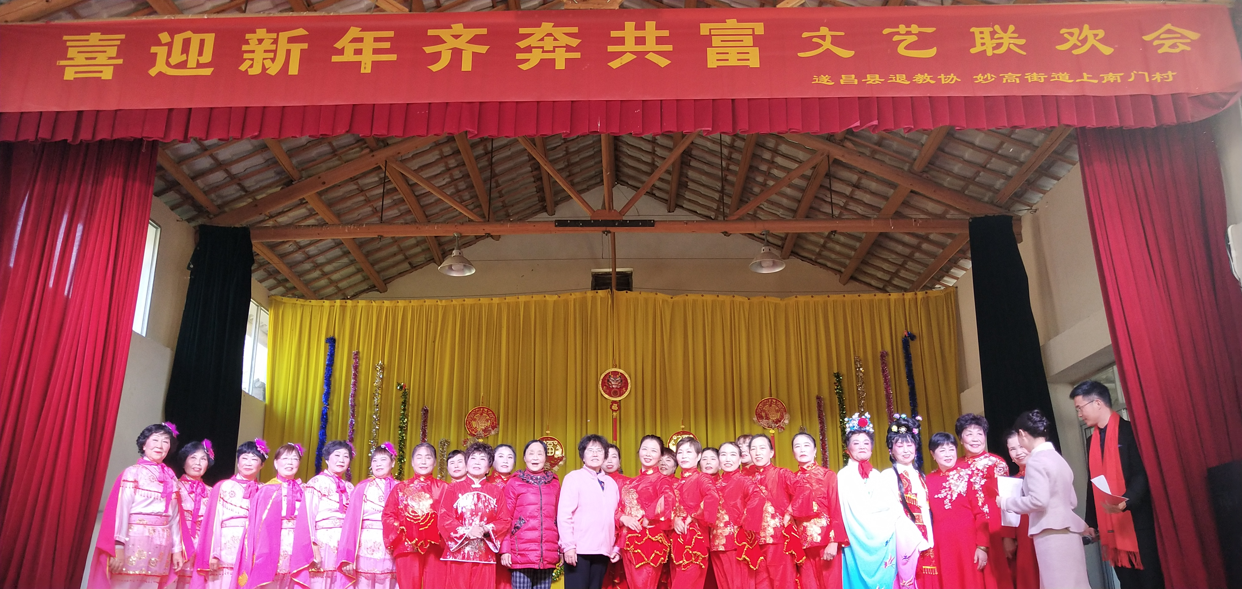 風光勝舊,歲序更新。2023年12月28日下午,浙西南的麗水市遂昌縣退教協與妙高街道上南門村在村文化禮堂攜手舉辦“喜迎新年齊奔共富”文藝聯歡會??h教育局黨組成員、副局長江志軍,縣老體協主席尹根松、縣老體協副主席吳宏潮、上南門村書記主任張文瑞、縣退教協會會長涂志丹出席聯歡會。