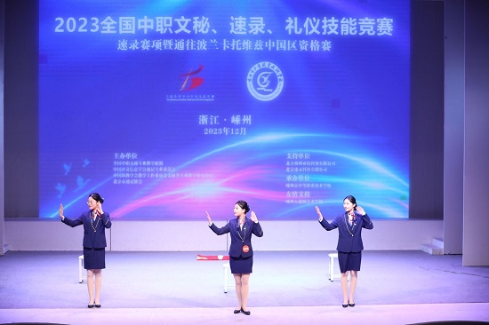 2023全國中職文秘、速錄、禮儀技能競賽旨在提高中職文秘類專業人才培養質量,展示中職文秘類專業學生積極向上、奮發進取的精神風采和熟練的職業技能。競賽共分文秘、速錄、禮儀3個賽項,紹興財經旅游學校報名參加了文秘賽項和禮儀賽項,其中文秘賽項包括辦會在線測評、日常事務處理、文書寫作與修改、新媒體創作四項內容;禮儀賽項包括在線測評、個人風采展示、禮儀操創編與展示、職業禮儀情景劇四項內容。