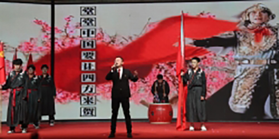 演唱結束后,校領導和中層干部、學生干部代表,依次登臺,為建校師生獻上滿含著溫馨祝福的新春賀聯和“福”字,恭祝“元旦快樂,龍年吉祥”。