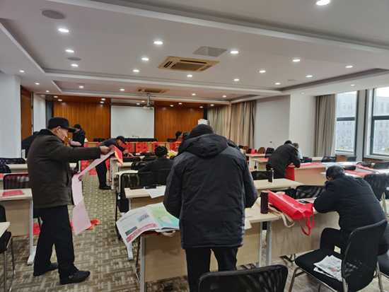 書法班程建兵老師帶領著學員現場書寫春聯和福字,一張張行云流水的書法、一句句溫暖感人的祝福傳遞對藝術的熱愛,分享學有所獲的喜悅,也讓大家提前感受到了濃濃的新年氛圍。