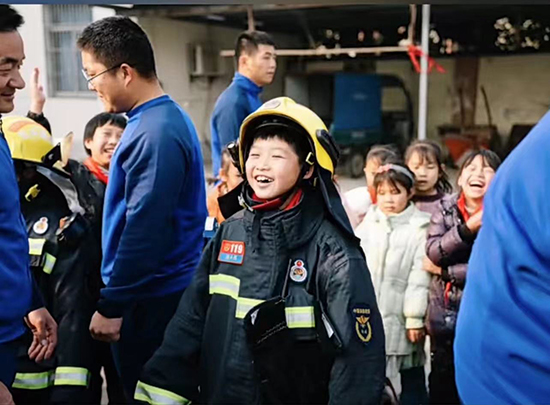 三年級的小高很幸運被抽中試穿消防衣,在消防員的幫助下戴上消防頭盔、穿上厚重的消防衣、套上長長的消防靴,儼然是一位英俊威武的消防戰士,嘴上樂開了花,喜滋滋地擺poss,可是,不一會兒,臉上就出了汗,小高忙說:“太重了!太重了!消防員叔叔穿著設備還要救火太不容易了!”