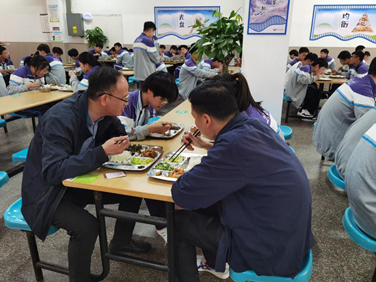 語文、數學、英語、思政四門公共文化課采用集備形式,嚴格遵照“五定四要”的規定執行。校黨委班子全程參與,督促在落實集備上加強研究、細化流程、物化成果、跟蹤聽課,共享集備成果,共提教學質量。學校為了保障師生就餐安全、維持校園就餐秩序,嚴把食堂質量關,積極落實領導班子“陪餐”制度,保障師生健康權益。