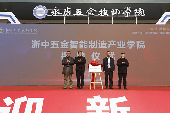 在熱烈的掌聲中,金職院黨委委員、副院長張雁平,永康五金技師學(xué)院黨委委員、常務(wù)副院長王鐘寶,及真空器皿股份有限公司總工胡壽仁、王力安防科技股份有限公司智能裝備中心總監(jiān)張兔書共同為浙中五金智能制造產(chǎn)業(yè)學(xué)院揭牌,這將推動區(qū)域中高職一體化高校資源下移,促進(jìn)學(xué)校教學(xué)質(zhì)量的穩(wěn)步提升。