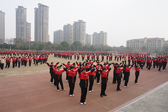 專家組實地查看了大課間體育活動,觀摩了大課間“排隊進場”—“集體跑操”—“花樣跑操”—“有氧體操”—“有序退場”五個環節,真切感受了海寧技師學院師生的運動樂趣和體育活力。