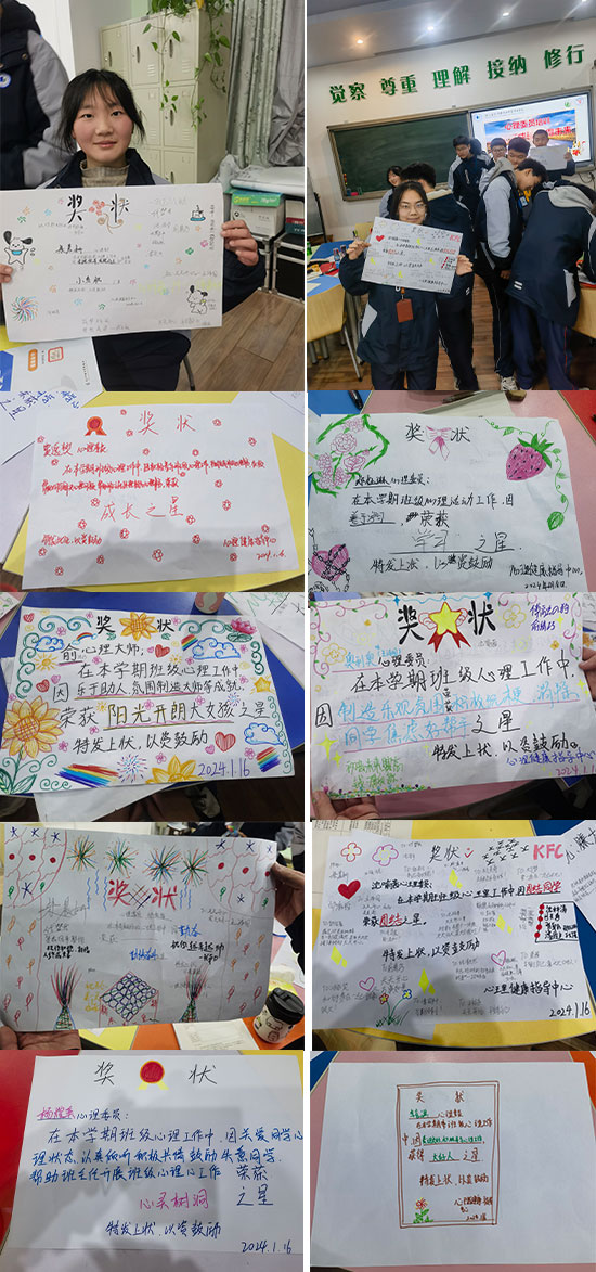 最后,活動以大合照記錄伙伴們美好的成長經歷,銘記“同伴攜手健康青春”初心,為全校班級心理委員群策群力、齊心協力地完成了本學期心理健康服務工作作出見證。伙伴們紛紛表示,總結活動和“創意獎狀”的頒發意義非凡,將帶著“筑夢踏實,贏得未來”的決心和信心,啟程2024。(崔明敏)