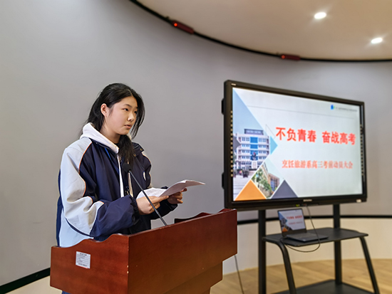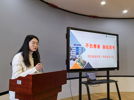 學生代表21旅游1班陳智怡也在全體師生面前表態并呼吁全體考生確定目標,付諸行動,養成優良的學習習慣,做思想上的強者,做生活中的強者,做學習上的強者。