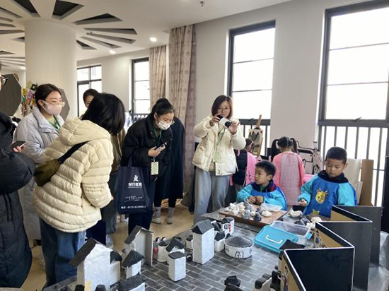 在嘉興市第一幼兒園,大家聆聽(tīng)了馬利霞園長(zhǎng)《讓每個(gè)孩子擁有快樂(lè)的童年——嘉興市一幼辦園思想及園本課程建設(shè)介紹》的專題講座,還進(jìn)行了“南湖十里”自主游戲觀摩。
