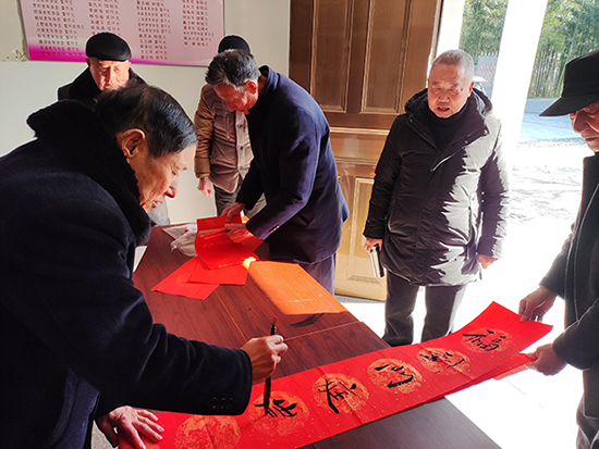 翰墨迎新春,贈“福”暖人心。紅紅火火的春聯(lián)散發(fā)著清新的墨香,飽含著深深新春祝福,愿山村居民生活越來越美好。(裴新明)