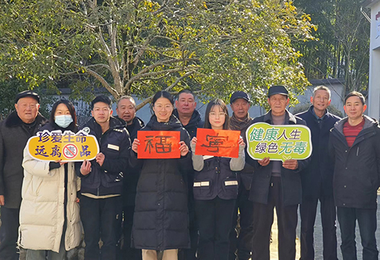 活動中,安吉家“圓”融冰工作室社工利用村民聚集的契機,開展毒品預防的科普宣傳,并號召大家加入到禁絕毒品的宣傳隊伍中來,特別是在春節(jié)走親訪友之際,向身邊的人呼吁,共同營造“無毒”的安寧生活。