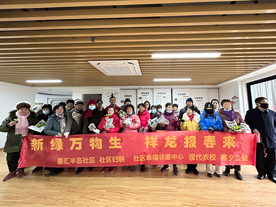 1月22日,湖州農校黨總支第一黨支部的楊勇老師、第二黨支部的徐婷婷老師來到湖州市星匯半島社區幸福鄰里中心,為社區居民開展《生菜栽培》的公益培訓活動。楊老師從生菜的生長習性、種苗繁育、生產應用、家庭園藝四個方面進行闡述,結合種苗盆栽,一一解答學員提出的日常實際問題,并傳授了一些種植小竅門。生菜諧音“生財”,楊老師和徐老師將湖州農校基地培育的生菜種苗贈送給居民學員,祝福學員“新年生財”。