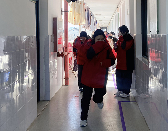 中午12時(shí)25分,疏散組及安全保障組成員迅速就位維持好各樓層寢室紀(jì)律,穩(wěn)定學(xué)生的情緒,大聲地指揮,教育學(xué)生撤離時(shí)要注意保護(hù)頭部,彎腰撤離,注意樓梯口行走安全。學(xué)生從樓道疏散時(shí)一律靠右行走,要求保持嚴(yán)肅,嚴(yán)禁說(shuō)話、嬉笑、打鬧,嚴(yán)禁搶先、推拉,做到有序疏散。遇到前面隊(duì)伍停止時(shí),后面同學(xué)應(yīng)立即停止,防止踩踏事故發(fā)生。12時(shí)30分,全體住校生學(xué)生嚴(yán)格按照演練要求,在“三短一長(zhǎng)”警報(bào)鈴聲響起后,用濕毛巾(手)捂住口鼻,成縱隊(duì)迅速有序、彎著腰疏散到操場(chǎng)集中。學(xué)生到達(dá)操場(chǎng)指定位置后整隊(duì)待命。寢室長(zhǎng)清點(diǎn)人數(shù)并上報(bào)。