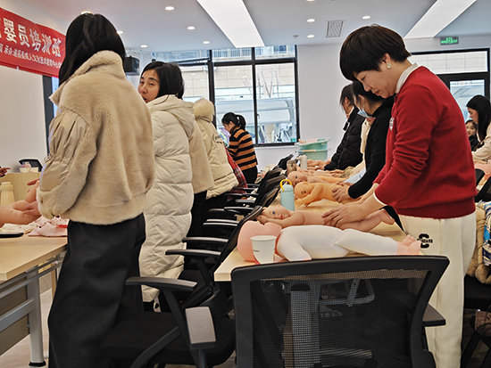 朱香紅說:“高級育嬰員的培訓更注重兒童心理教育的開展,包括‘生長發育縱向監測、常見疾病預防和護理、食譜和嬰兒膳食、三浴鍛煉、營造良好的環境、編制個別化教學計劃、對自己和寶寶培訓指導和評估等’內容需要學員全面掌握,課程有一定的挑戰性,但是,對于長期從事嬰幼兒教育的老師們來說,尤其是對已經具有初、中級培訓經歷的學員,要達到高級工的水平不是問題!”