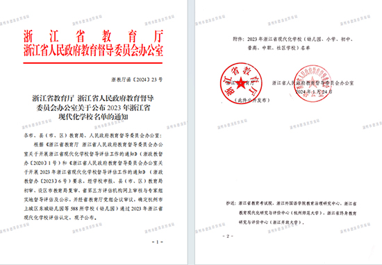 1月24日,浙江省教育廳、浙江省人民政府教育督導委員會正式發文公布了2023年浙江省現代化學校名單,德清職業中專成功上榜。2023年獲評的浙江省現代化中職學校中,全省共19所,湖州市僅1所。此次獲評是提升學校辦學品質的又一標志性工程,凝聚了全校師生、全體家長的努力和心血,也離不開社會各界的關心和支持。