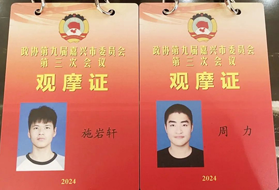 “一步入會(huì)場(chǎng),最深的感受是莊嚴(yán)和震撼。通過(guò)近距離觀摩,我更加深刻地感受了社會(huì)主義協(xié)商民主,學(xué)習(xí)了全過(guò)程人民民主的深刻內(nèi)涵。”來(lái)自嘉興市建筑工業(yè)學(xué)校的周力身著正裝,充滿朝氣帶著希望踏入會(huì)場(chǎng),度過(guò)了一場(chǎng)難忘的旅程。