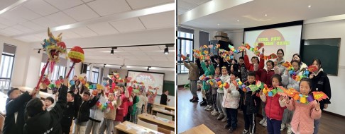 1月29日下午,南祥社區開展了第一場活動。活動伊始,張芳賢老師通過一個暖身活動,將孩子們吸引到課堂中。隨后,一個“鯉魚跳龍門”的小游戲,使孩子們的積極性充分調動起來,孩子們自信勇敢的一躍,像極了學習生活中遇到困難不服輸的模樣。接著,張老師邀請了參加活動的3位同學講述他們熟知的龍的故事,一個個聲情并茂的演講,引來在座觀眾不斷的掌聲。了解清楚龍的故事、成語和習俗后,正式進入了龍的制作環節。孩子們用五顏六色的彩筆,為自己的龍頭和龍尾涂上了漂亮的顏色,并用剪刀小心翼翼地剪下來。然后,將彩色的長方形紙一個接一個串起來,構成龍的身體。最后,將身體和龍頭龍尾拼接在一起,一條生龍活虎的龍就做好了。活動接近尾聲,所有孩子將手中的龍首尾相接,串成了一條中華巨龍,孩子們都是龍的傳人。