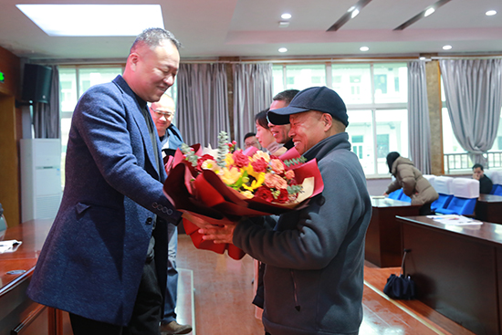 德清縣教育局黨委委員、德清職業中專校長董國偉和工會主席、副校長楊月明為三位教職工送上鮮花,代表學校對他們表示最誠摯的謝意,感謝他們數十年如一日的無悔與付出。