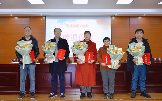 會議伊始,海鹽縣理工學校為今年的五位退休教師舉辦了榮退儀式。學校黨委書記宋海平、校長李俊為退休教師頒發了榮譽證書,獻上了鮮花。退休教師代表何永香校長作發言。何校長回顧了自己的三十七載職教緣,并對海鹽職業教育獻上了美好祝愿,對職業教育工作者給予了殷殷祝福。