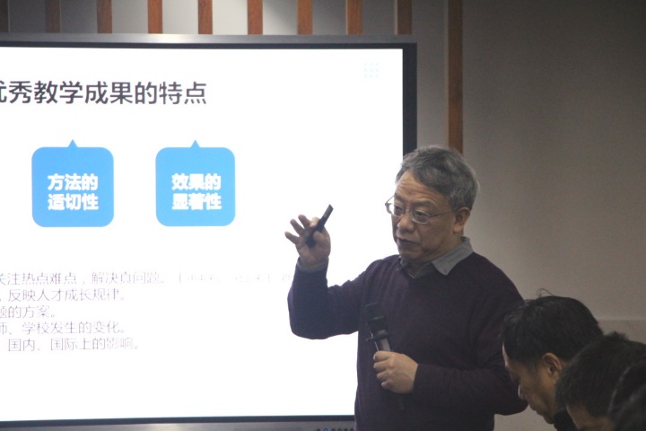 為提升衢州市職業(yè)教育省教學(xué)成果孵化項(xiàng)目培育的質(zhì)量,本次活動(dòng)特邀浙江省教育科學(xué)研究院副院長(zhǎng)程江平蒞臨指導(dǎo)。程院長(zhǎng)聚焦教學(xué)成果孵化,對(duì)教學(xué)成果評(píng)選的目的意義、教學(xué)成果的內(nèi)涵特征以及教學(xué)成果與科研成果的區(qū)別等方面作了深入闡釋。