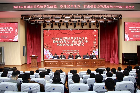 凡事先一步,是真正的負責。而做好一件事的基礎,是提前做好充足的準備。時值農歷正月初十,當全國人民還沉浸在新年氛圍之中,2024年全國職業院校學生技能、教師教學能力、班主任能力和思政能力大賽開訓儀式在柯橋區職業教育中心報告廳隆重舉行。柯橋區教育體育局教師發展中心教研員魏云飛、賈繼冬,校黨委書記鐘建康、校長周國林、副校長繆偉亮、督導潘興云等領導以及相關科室負責人、各學院院長、分管院長及四大賽全體集訓師生參加儀式。儀式由副校長繆偉亮主持。