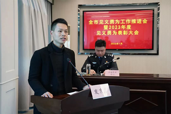 1月25日上午,嵊州市見(jiàn)義勇為工作推進(jìn)會(huì)暨2023年度見(jiàn)義勇為表彰大會(huì)在市公安局在召開(kāi)。會(huì)議大力推崇和褒獎(jiǎng)見(jiàn)義勇為的行為,嵊州市職教中心教師張東和保安周武合力救火的事跡受到了表彰,張東老師有幸作為見(jiàn)義勇為代表在大會(huì)上發(fā)言。