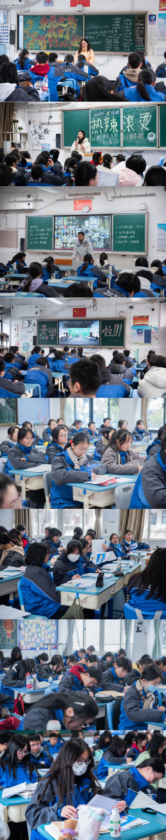 來到教室,班主任們早已坐鎮班級等待著久違的學生們。隨著同學們陸陸續續地到來,班主任們有序開展了開學第一課,就行為習慣、安全教育、心理教育、假期生活等展開討論。同學們一雙雙專注的眼睛,開啟了新學期的美好。