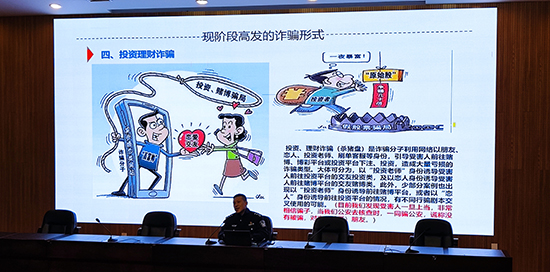 講座中,潘警官從“什么是電信網絡詐騙”“現階段高發的詐騙形式”“當前打擊電信網絡詐騙的難點”及“如何預防詐騙”等多個方面進行講授。為使宣講內容能通俗易懂,潘警官針對高中學生的年齡特點,通過真實的案例,細致分析受害者上當受騙的原因,教育同學們在遇到類似情況時的正確應對方法,盡力做到不慌張、不輕信、不上當,同時還為同學們講解了萬一受騙后需要采取的補救措施等。最后,他為全體師生總結了“不明來電別輕信、轉賬匯款別大意、沒事多看公眾號、提高意識防詐騙”四句“防詐反詐”小口訣,讓防詐反詐真正深入人心。