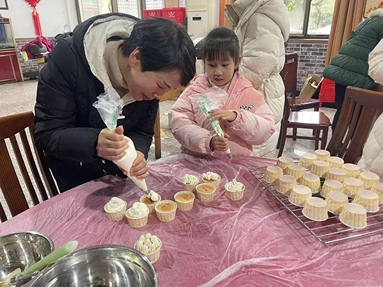 活動(dòng)中,烘焙老師向村民講解紙杯蛋糕的具體烘焙步驟,利用提前準(zhǔn)備好的牛奶、雞蛋、低筋面粉等材料進(jìn)行現(xiàn)場(chǎng)演示。參與者們?cè)诶蠋煹闹笇?dǎo)下,學(xué)習(xí)了制作蛋糕的全過(guò)程,從混合原料到烘烤,每一個(gè)步驟都讓她們充滿興奮和期待。接著,烘焙老師耐心地教大家如何裝飾紙杯蛋糕,并鼓勵(lì)大家發(fā)揮創(chuàng)意,嘗試不同的裝飾方式。隨后,大家開(kāi)始動(dòng)手進(jìn)行裝飾,彩色的麥片、新鮮的水果成為了裝飾的主角,紙杯蛋糕在她們的巧手下變得五彩斑斕、美輪美奐。