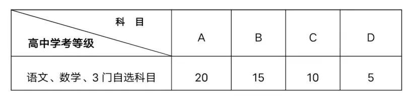 第一類:普高招生考生總分=全省普通高中學業水平考試(學考)折算成績+學校職業適應性測試成績普高招生考生普通高中學業水平考試(學考)折算成績由2門必選科目+3門自選科目組成,五門科目成績進行折算,不同等級換算成相應分值,滿分為100分。必選科目為語文、數學,三門自選科目從外語、物理、技術、政治、歷史、地理、化學、生物學中選擇學考等級最優的三門。高中學考等級以浙江省教育考試院提供的成績為準,學考等級是外省獲得的,須提供學籍所在省的省級機構出具或簽署意見的學業水平考試成績證書或證明(原件)。換算如下表: