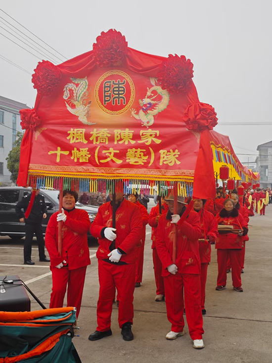 據(jù)了解,諸暨市楓橋鎮(zhèn)“陳家十番”歷史悠久,自南宋以來(lái)就有擊鼓吹簫、撥弄絲弦之風(fēng),屬絲竹鑼鼓中的文十番,由18人組成,打擊樂(lè)器有云鑼?zhuān)ň乓翳專(zhuān)⑻窗濉⑿¤尅⑴砉摹⒆测彙⒛爵~(yú);吹奏樂(lè)器有橫笛、洞簫、笙、段管;弦樂(lè)器有二胡、四弦胡、墜胡、琵琶、三弦、雙磬,也有提琴、鐃、鈸、月琴等樂(lè)器調(diào)換。目前能演奏《念佛》《平沙》《纏藤花》《數(shù)羅漢》《梅花三弄》等十多首曲目。為傳承優(yōu)秀文化,助力鄉(xiāng)村振興,文藝隊(duì)舉行巡演儀式,使這一民間藝術(shù)重新進(jìn)入大眾視線。(孫文明)