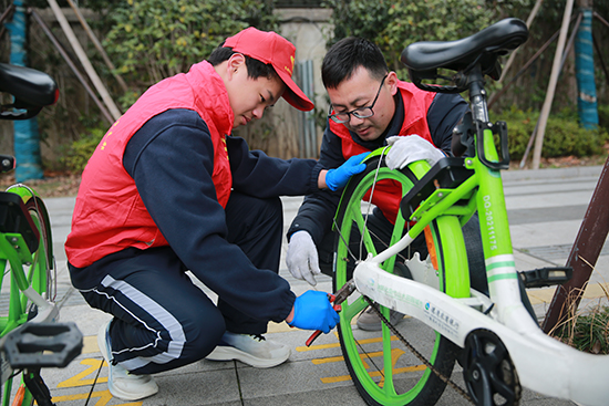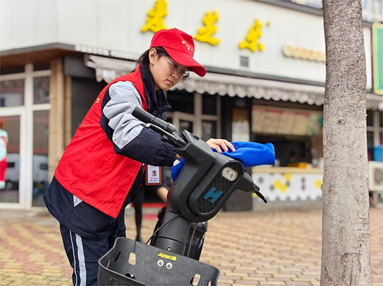 同學們在黨員教師的帶領下分組清理公共場所的垃圾,將小徑上、花叢中、草坪旁的各種零碎的垃圾清理干凈,并分類放置在垃圾桶里,美化城市環境。在志愿活動中,同學們不僅不怕苦,不怕臟,不怕累,還在老師的指導幫助下,運用所學專業技能對公共自行車、電瓶車等污損折舊的公共設施設備進行維修養護,充分展現職教學子知行合一、勤懇務實的職業品質。