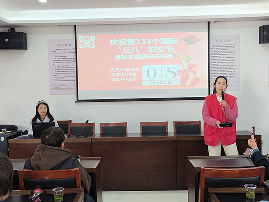 陽春三月,萬象更新。在第114個“三八”國際婦女節來臨之際,為進一步提升女性健康水平,增強婦女的自我保健意識和預防疾病的能力,促進身心健康,3月8日上午,安吉社區教育學院天荒坪分院聯合天荒坪鎮婦聯等單位,在天荒坪鎮西鶴村舉辦了以“關愛女性健康 呵護美好人生”為主題的女性健康知識專題講座,特邀安吉縣婦保院徐謙益醫生主講。