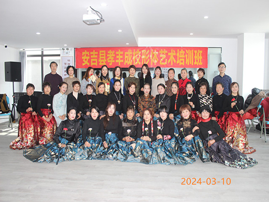 為提高轄區(qū)女性的文明禮儀知識,幫助女性居民提升形象氣質(zhì)和內(nèi)在修養(yǎng),3月10日下午,安吉縣孝豐區(qū)域性中心成人文化技術(shù)學校(簡稱“孝豐成校”)形體藝術(shù)培訓班順利開班,共計33位學員參加。