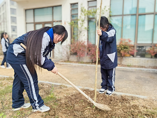 為提高學生的環保意識和勞動意識,在植樹節當天,德清職業中專烹飪旅游系園林專業學生在老師陪同下開展植樹活動,共同為地球母親增添一抹新綠。