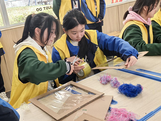 社區(qū)開展了再生資源利用,變廢為寶的活動(dòng)。諸師傅回收的工作人員將可回收的材料發(fā)下去,將硬紙板裁剪成一個(gè)個(gè)正方形的框,志愿者用透明膠把硬紙板的一面粘上,另一面有粘性的可以粘貼回收來的再生資源。粘貼物有織物、毛線、紐扣等再生資源。通過志愿者們的團(tuán)結(jié)協(xié)作,一幅幅不同景象的手工植物成品就展示出來了。這個(gè)過程中,學(xué)生們深刻體會(huì)到變廢為寶的魅力。每一份廢棄物品,都有可能成為手中的寶貝。不再將它們視為無用的垃圾,而是將它們視為潛在的資源。學(xué)生們學(xué)會(huì)了珍惜,學(xué)會(huì)了節(jié)約,更加懂得了保護(hù)環(huán)境的重要性。