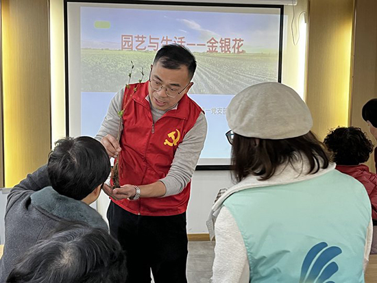 3月11日,湖州農(nóng)校黨總支第一、第二支部黨員楊勇、徐婷婷兩位老師來到湖州市月河街道幸福鄰里中心(社工站)展開中國傳統(tǒng)醫(yī)藥金銀花的種植教學(xué)。圍繞金銀花生長習(xí)性、花期特點、家庭園藝、扦插技術(shù)、花朵烘制等方面進(jìn)行細(xì)致闡述,傳播金銀花的藥用價值和食用價值,重點講述如何進(jìn)行金銀花的栽種、扦插、水肥施用,并指導(dǎo)家庭園藝種植。