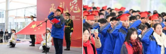 2121班曹君豪同學帶領大家舉起右拳,莊嚴宣誓:我是中華人民共和國公民,今后一定遵紀守法,正確行使公民權利,積極履行公民義務,自覺維護社會公德。崇尚科學,追求真知,完善人格,強健體魄。為了國家富強、民族復興、人民幸福,奉獻自己的智慧和力量!
