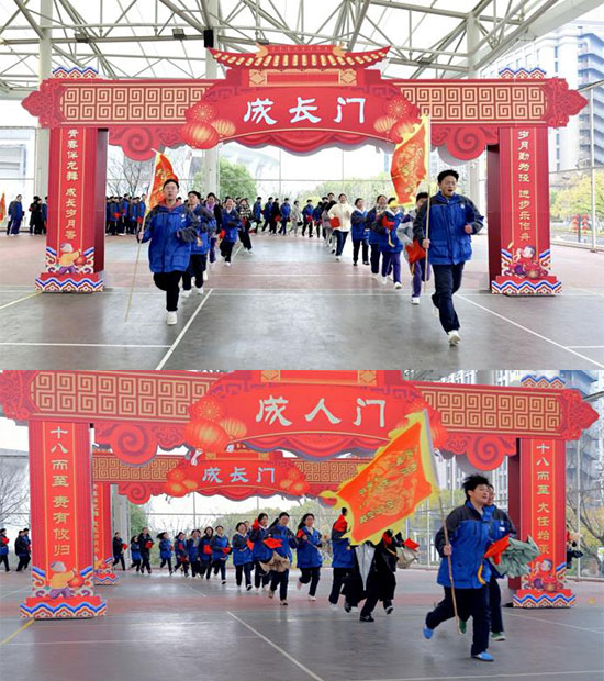 礪行致遠正青春,劍指長空諾誓言;承禮冠笄擔重任,金榜亮劍顯本色。在激昂的音樂聲中,同學們依次跑過成人門、成長門和成才門,在奔向未來的路上,他們勇往直前?。ê贾菔信R平職業高級中學)