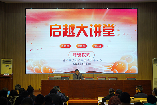 3月15日下午,諸暨市職業教育中心全體教師齊聚學校多功能廳,共同迎接學校本學期“啟越大講堂”的開講。近年來,以“師德師風”為抓手,以“啟越大講堂”為載體,以促進教師專業化發展為最終目標,積極認真地開展校本培訓。