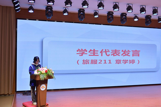 來自旅服211班的章學婷同學代表全體學生發言,她表示會牢牢把握此次實踐的機會,遵守紀律、認真學習、踏實工作,快速適應身份轉變、提升專業技能!